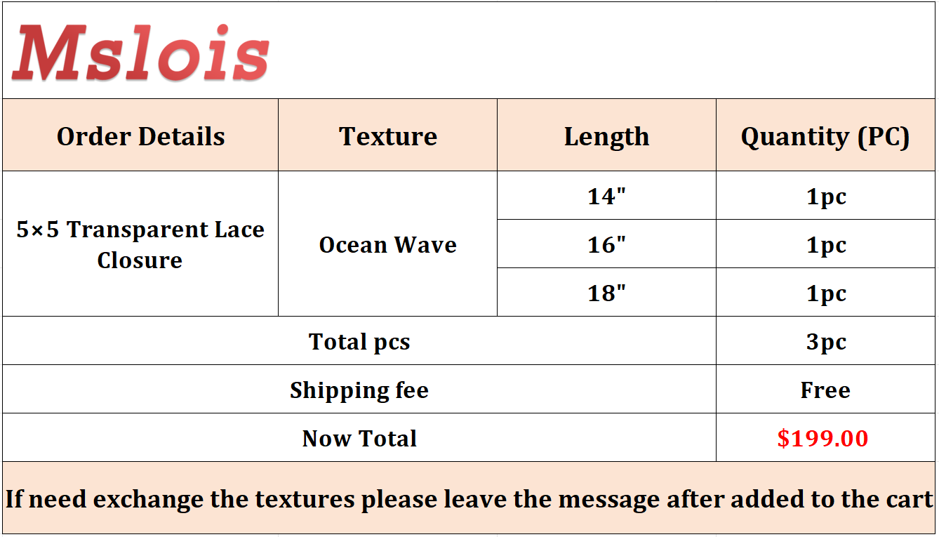 5×5 Transparent Lace Ocean Wave 14 16 18Inch Free Shipping,Sample +Wholesale Package