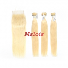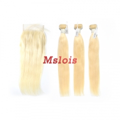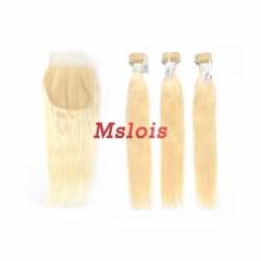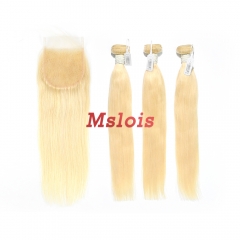 Blonde #613 European Virgin Human Hair 4X4 Lace Closure With Hair Weft Straight