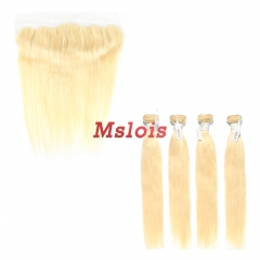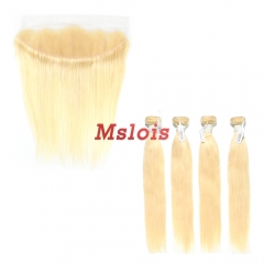 Blonde #613 European Virgin Human Hair 13X4 Lace Frontal With Hair Weft Straight