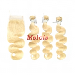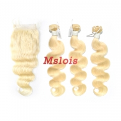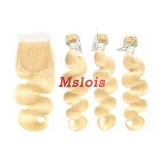 Blonde #613 European Virgin Human Hair 4X4 Lace Closure With Hair Weft Body Wave