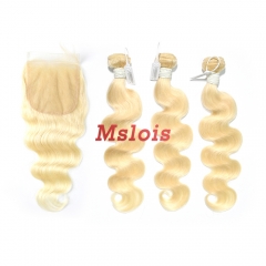 Blonde #613 European Virgin Human Hair 5×5 Lace Closure With Hair Weft Body Wave