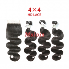 HD Lace Virgin Human Hair Bundle with 4×4 Closure Body Wave