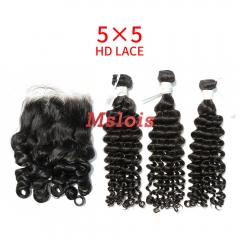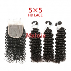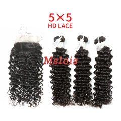 HD Lace Virgin Human Hair Bundle with 5X5 Closure Deep Curly