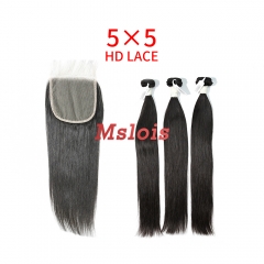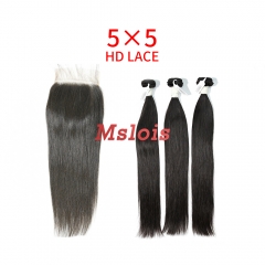 HD Lace Virgin Human Hair Bundle with 5X5 Closure Straight