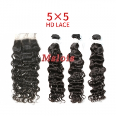 HD Lace Virgin Human Hair Bundle with 5X5 Closure Ocean Wave