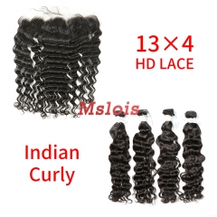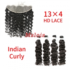 HD Lace Virgin Human Hair Bundle with 13×4 Frontal Indian Curly