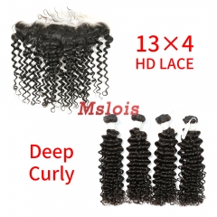 HD Lace Virgin Human Hair Bundle with 13×4 Frontal Deep Curly