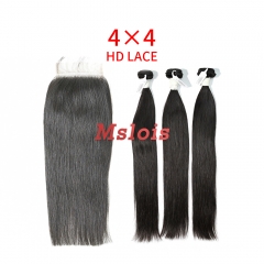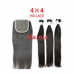 HD Lace Virgin Human Hair Bundle with 4×4 Closure Straight
