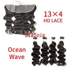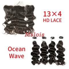 HD Lace Virgin Human Hair Bundle with 13×4 Frontal Ocean Wave
