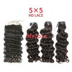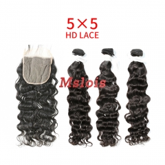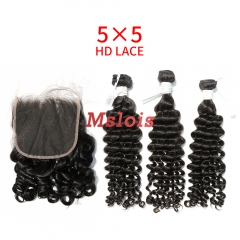HD Lace Virgin Human Hair Bundle with 5X5 Closure Deep Wave
