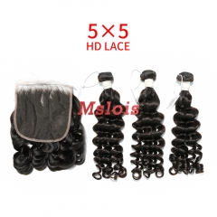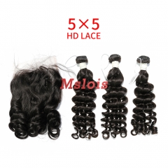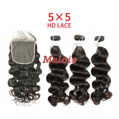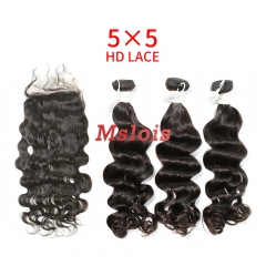 HD Lace Virgin Human Hair Bundle with 5X5 Closure Loose Wave