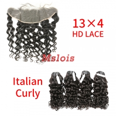 HD Lace Virgin Human Hair Bundle with 13×4 Frontal Italian Curly
