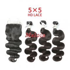 HD Lace Virgin Human Hair Bundle with 5X5 Closure Body Wave