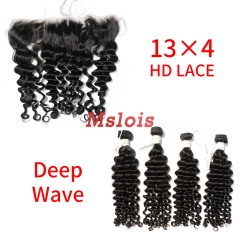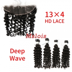 HD Lace Virgin Human Hair Bundle with 13×4 Frontal Deep Wave