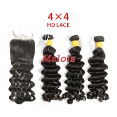 HD Lace Raw Human Hair Bundle with 4×4 Closure Deep Wave