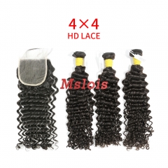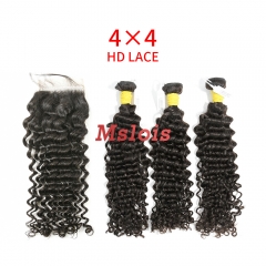 HD Lace Raw Human Hair Bundle with 4×4 Closure Deep Curly
