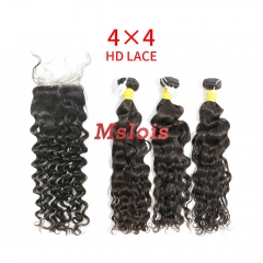 HD Lace Raw Human Hair Bundle with 4×4 Closure Indian Curly