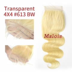 Blonde #613 European Raw Human Hair 4X4 Lace Closure Body Wave
