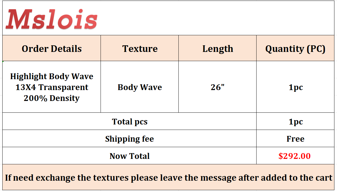Highlight Body Wave 13X4 Transparent 200% Density 26 Inch Wig Free Shipping,Sample +Wholesale Package