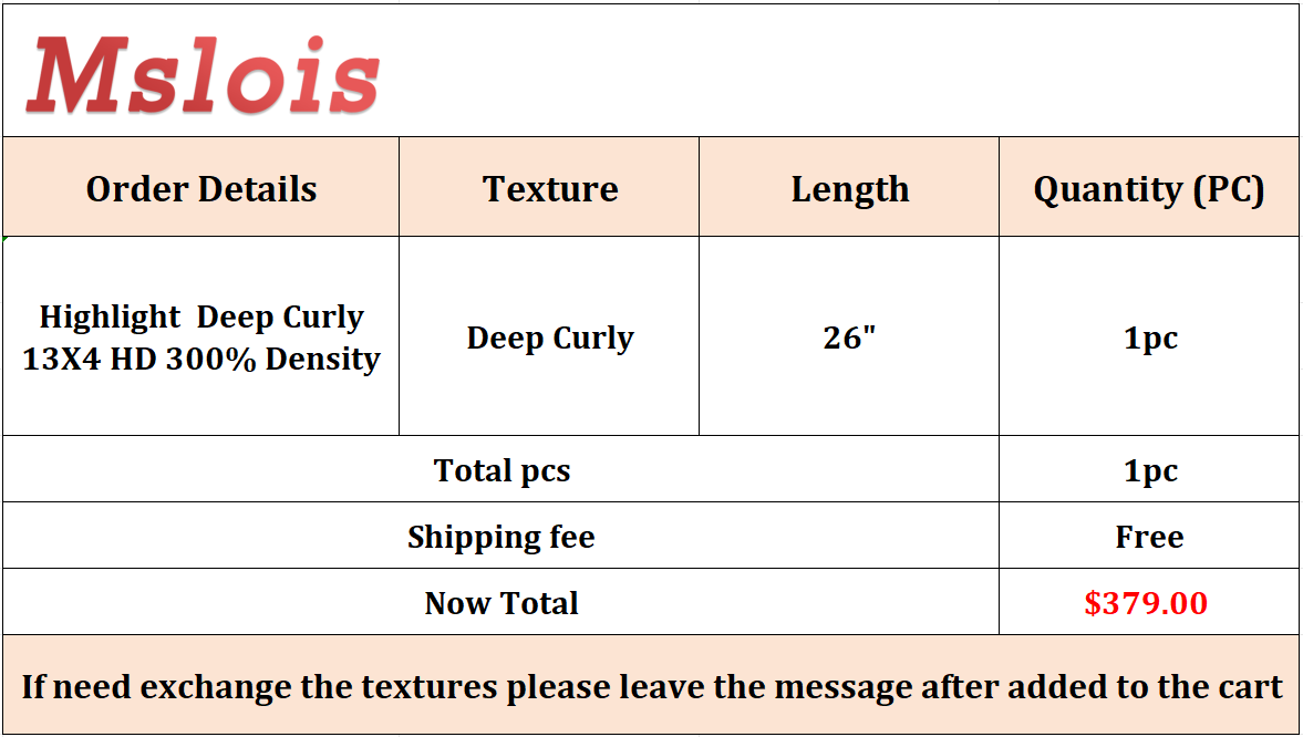 Highlight Deep Curly 13X4 HD 300% Density 26 Inch Wig Free Shipping,Sample +Wholesale Package