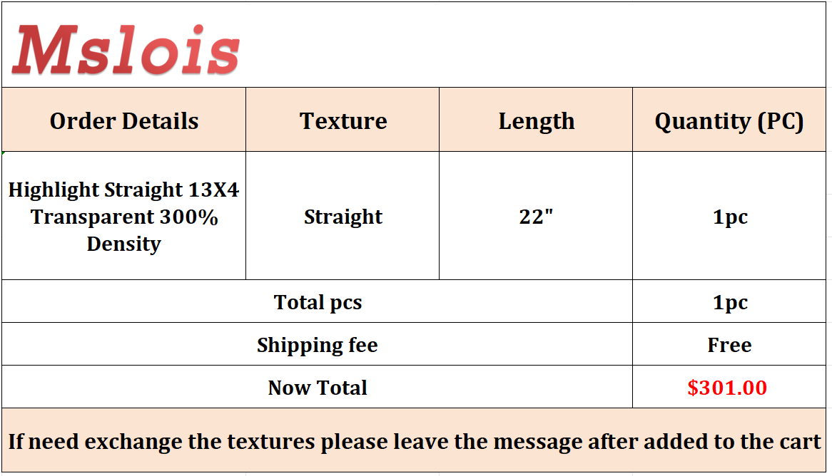 Highlight Straight 13X4 Transparent 300% Density 22 Inch Wig Free Shipping,Sample +Wholesale Package