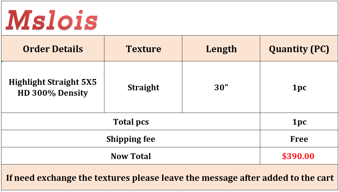 Highlight Straight 5X5 HD 300% Density 30 Inch Wig Free Shipping,Sample +Wholesale Package