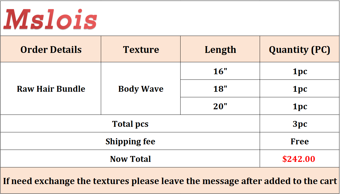 Raw Body Wave Hair Bundle 16 18 20Inch Free Shipping,Sample +Wholesale Package