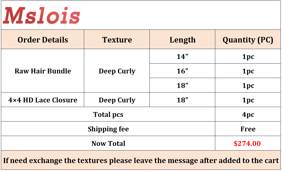Raw Deep Curly 14 16 18 Inch And 4x4 HD Lace 18 Inch Free Shipping