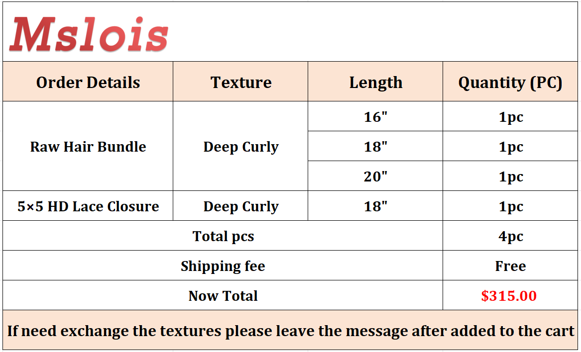Raw Deep Curly 16 18 20 Inch And 5x5 HD Lace 18 Inch Free Shipping