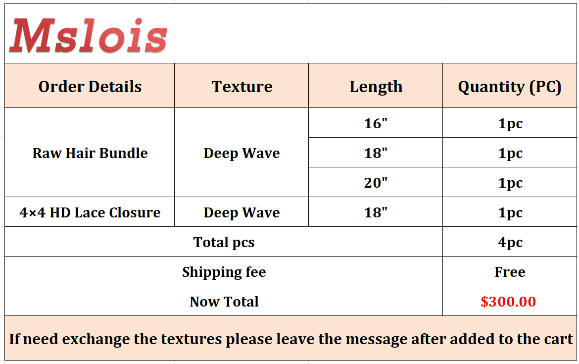 Raw Deep Wave 16 18 20 Inch And 4x4 HD Lace 18 Inch Free Shipping,Sample +Wholesale Package
