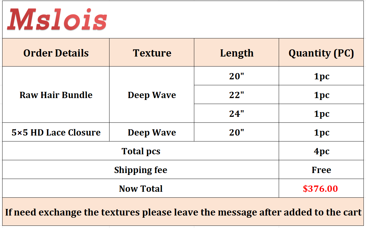 Raw Deep Wave 20 22 24Inch And 5x5 HD Lace 20 Inch Free Shipping,Sample +Wholesale Package