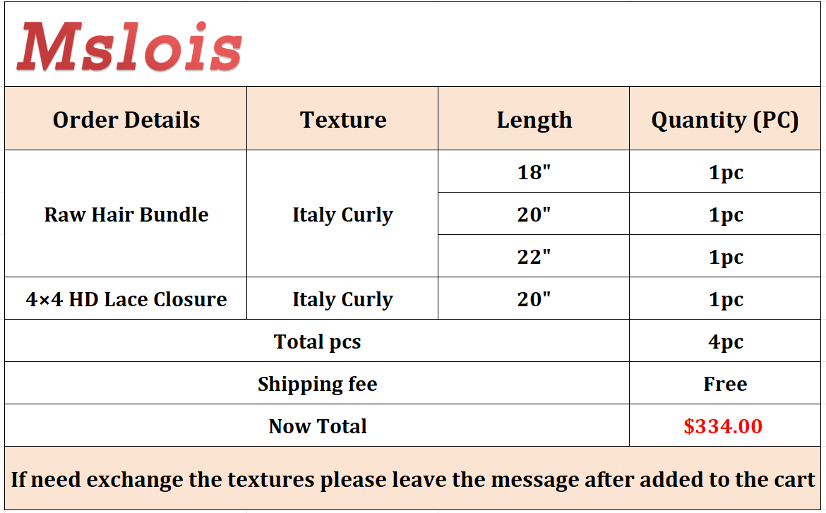 Raw Italy Curly 18 20 22 Inch And 4x4 HD Lace 20 Inch Free Shipping,Sample +Wholesale Package