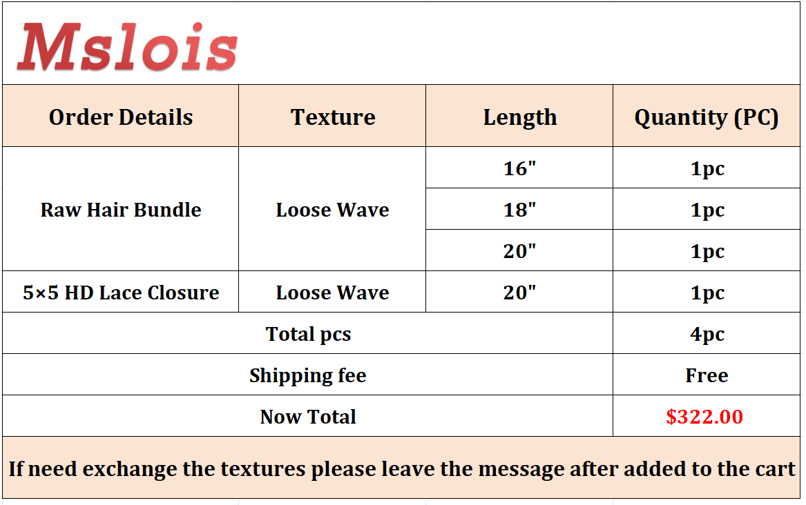 Raw Loose Wave 16 18 20 Inch And 5x5 HD Lace 20 Inch Free Shipping