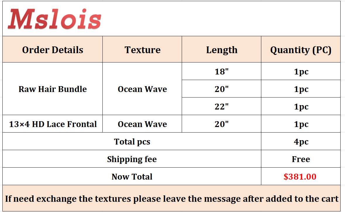 Raw Ocean Wave 18 20 22 Inch And 13x4 HD Lace 20 Inch Free Shipping