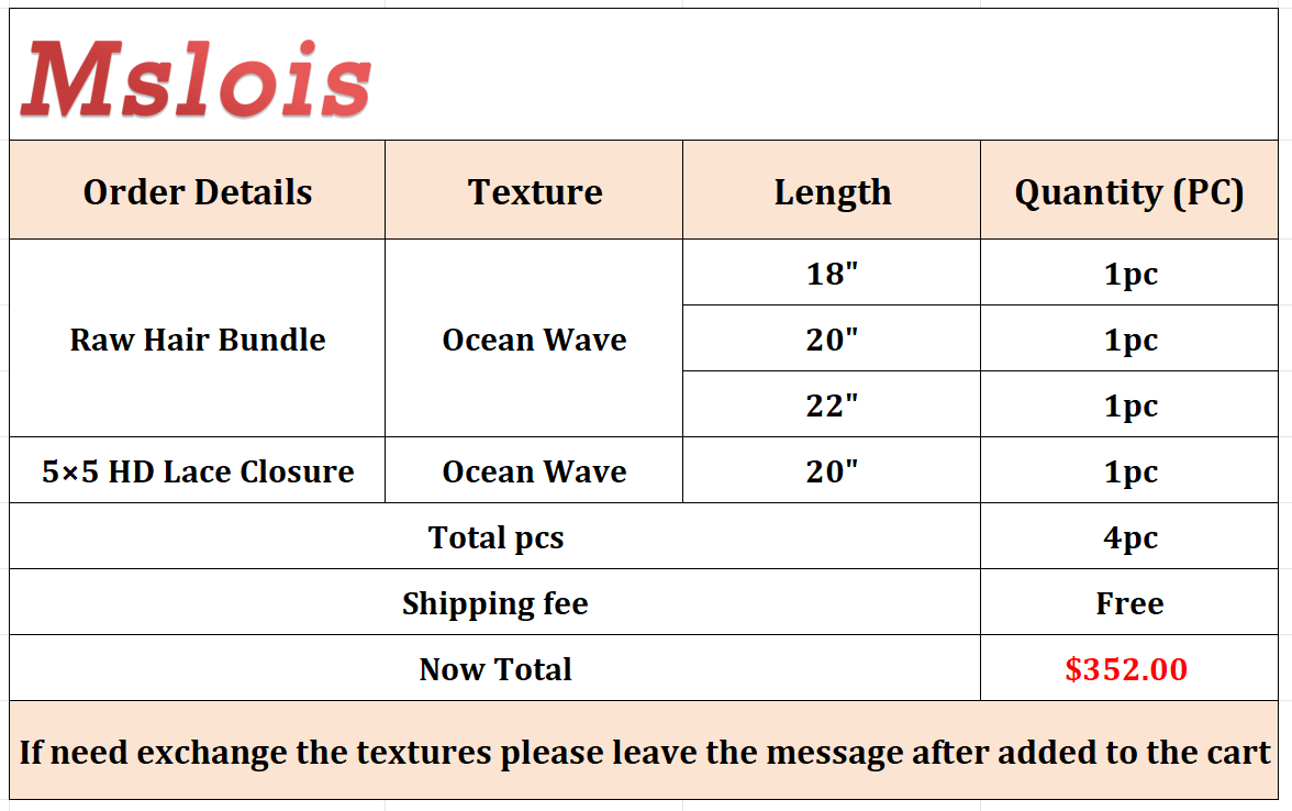 Raw Ocean Wave 18 20 22 Inch And 5x5 HD Lace 20 Inch Free Shipping