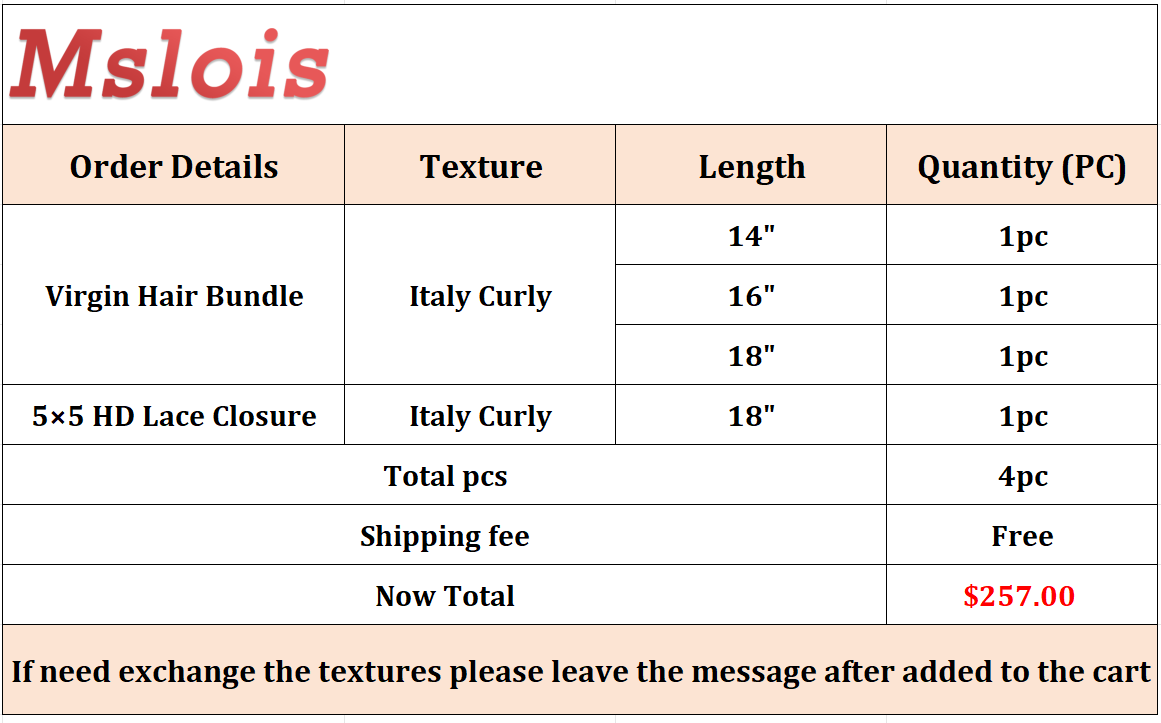 Virgin Italy Curly 14 16 18 Inch And 5x5 HD Lace 18 Inch Free Shipping
