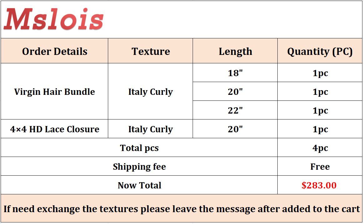 Virgin Italy Curly 18 20 22 Inch And 4x4 HD Lace 20 Inch Free Shipping,Sample +Wholesale Package