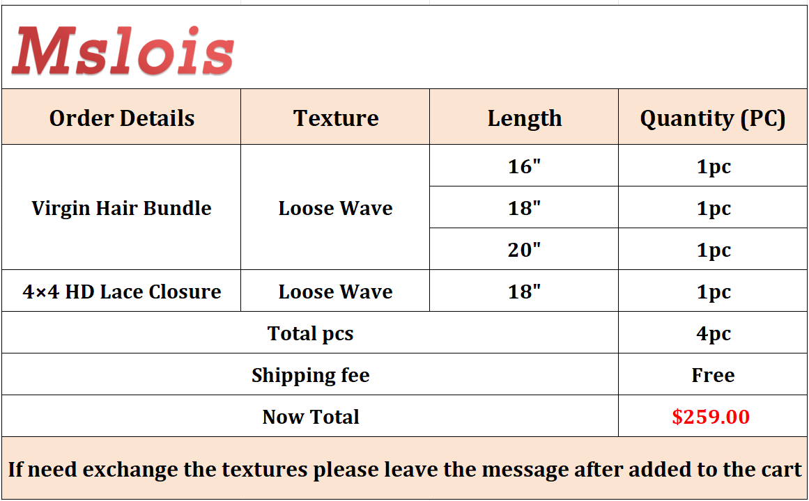 Virgin Loose Wave 16 18 20 Inch And 4x4 HD Lace 18 Inch Free Shipping