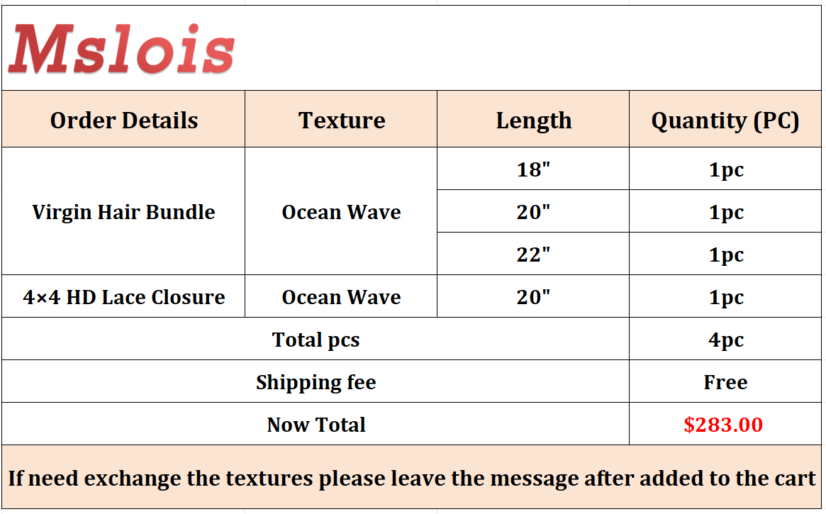 Virgin Ocean Wave 18 20 22 Inch And 4x4 HD Lace 20 Inch Free Shipping,Sample +Wholesale Package