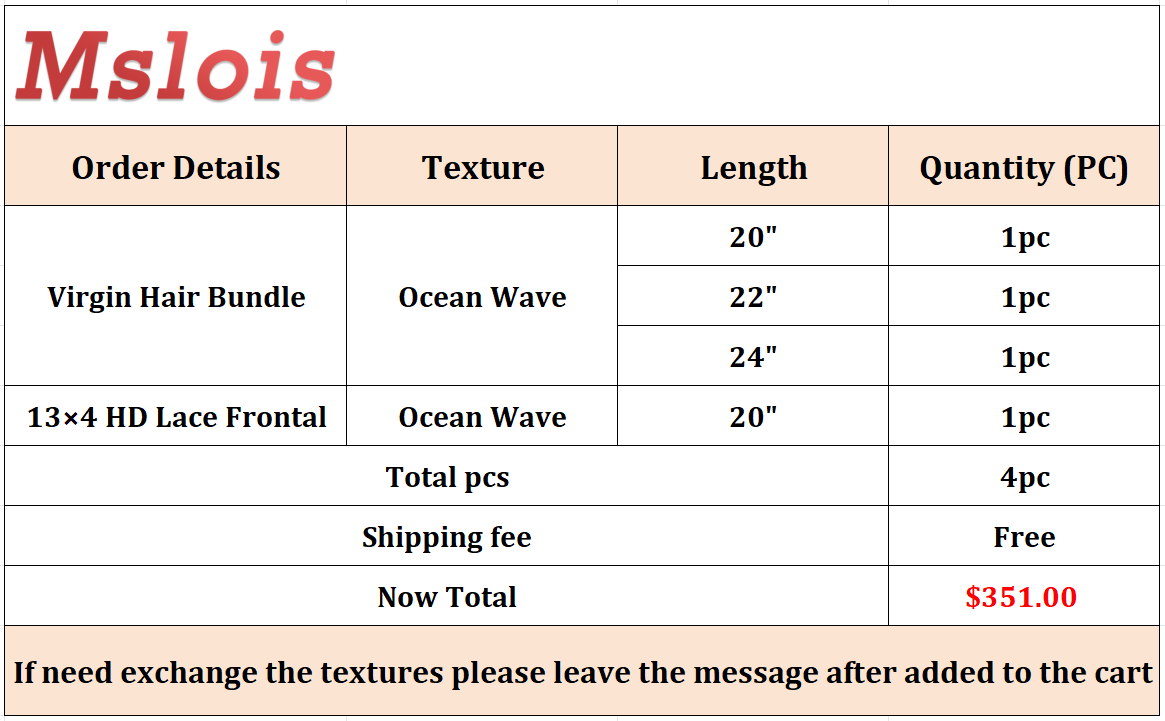 Virgin Ocean Wave 20 22 24 Inch And 13x4 HD Lace 20 Inch Free Shipping,Sample +Wholesale Package