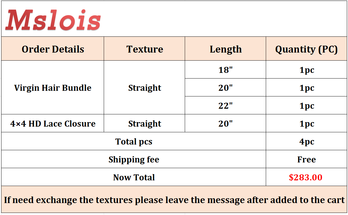 Virgin Straight 18 20 22 Inch And 4x4 HD Lace 20 Inch Free Shipping,Sample +Wholesale Package